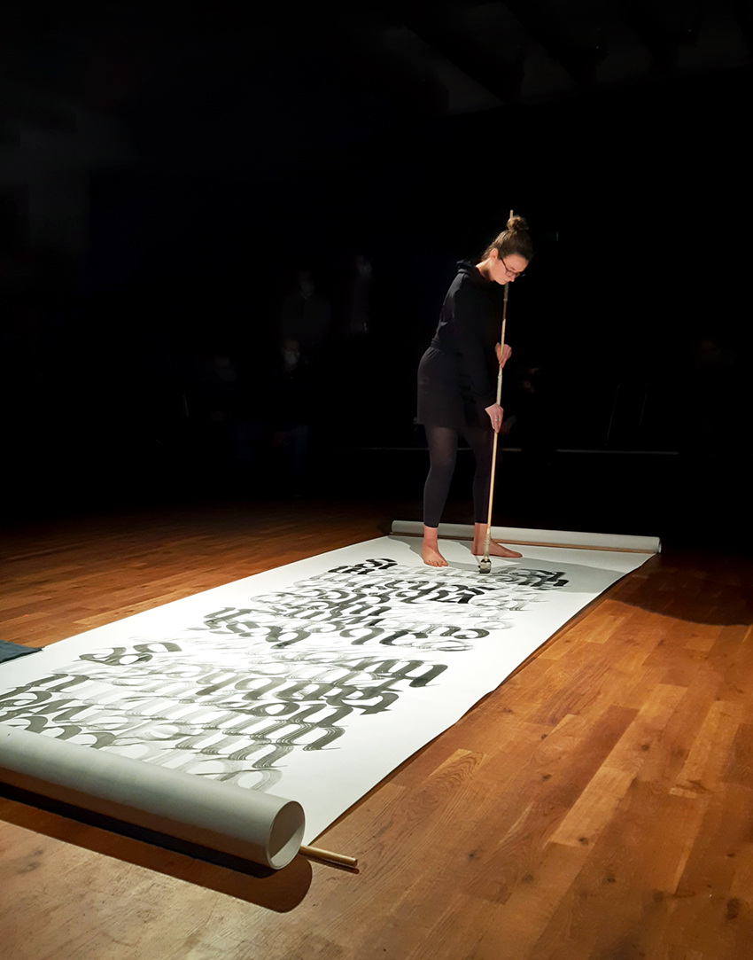 ›Mute Sound Word. Talking with Beethoven‹ ist eine Performance und Sound-Installation — eine Konversation zwischen Kalligraf*in Em Krallmann und Komponistin Maya Shenfeld — zu Ehren des 250. Geburtstags Beethovens. Beethoven verlor im Laufe seines Lebens die Fähigkeit zu Hören, so mussten seine Gäste via Konversationsheften mit ihm kommunizieren. Diese wertvollen Dokumente des Lebens und Denkens Beethovens stehen im Mittelpunkt dieses Projektes. Es bedient sich dieser auf außerordentliche Weise dokumentierten Konversationen als Ausgangspunkt der Untersuchung einer inneren und äußeren Kommunikation. Dabei erforschen die Künstlerinnen das Spannungsfeld zwischen dem Hörbaren und Unhörbaren, den realen und imaginären Klanglandschaften.