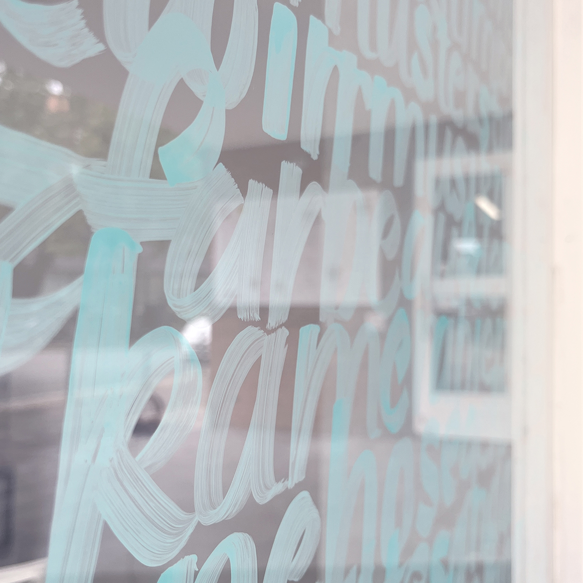 • Kreidefarbe Pinsel auf Glas (Chalk paint brush on glass, writing)