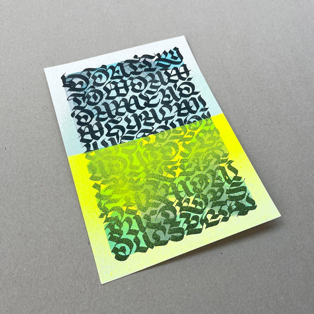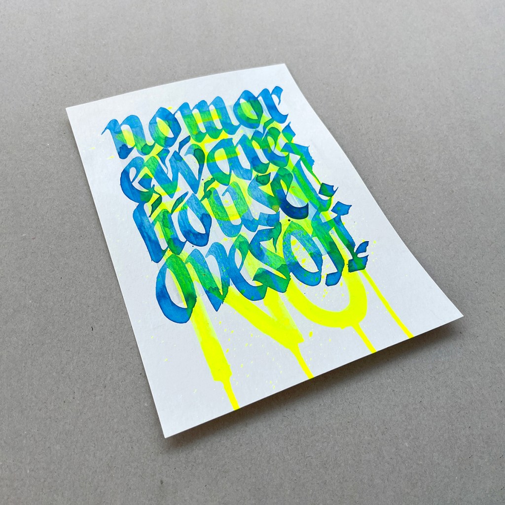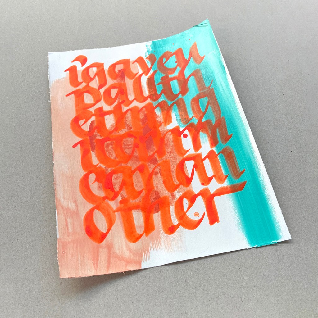 Neonorange: Humanistische Kursive, neon orange: humanistic cursive.