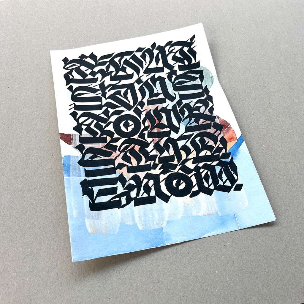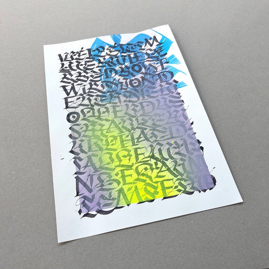 Im Moment, in dem die Feder auf dem Papier landet, schreibe ich den Buchstaben und dann den nächsten. Mein Gehirn ist dann jeder Logik entbunden — ich gebe meinem Unterbewusstsein den Raum, sich zu äußern. …