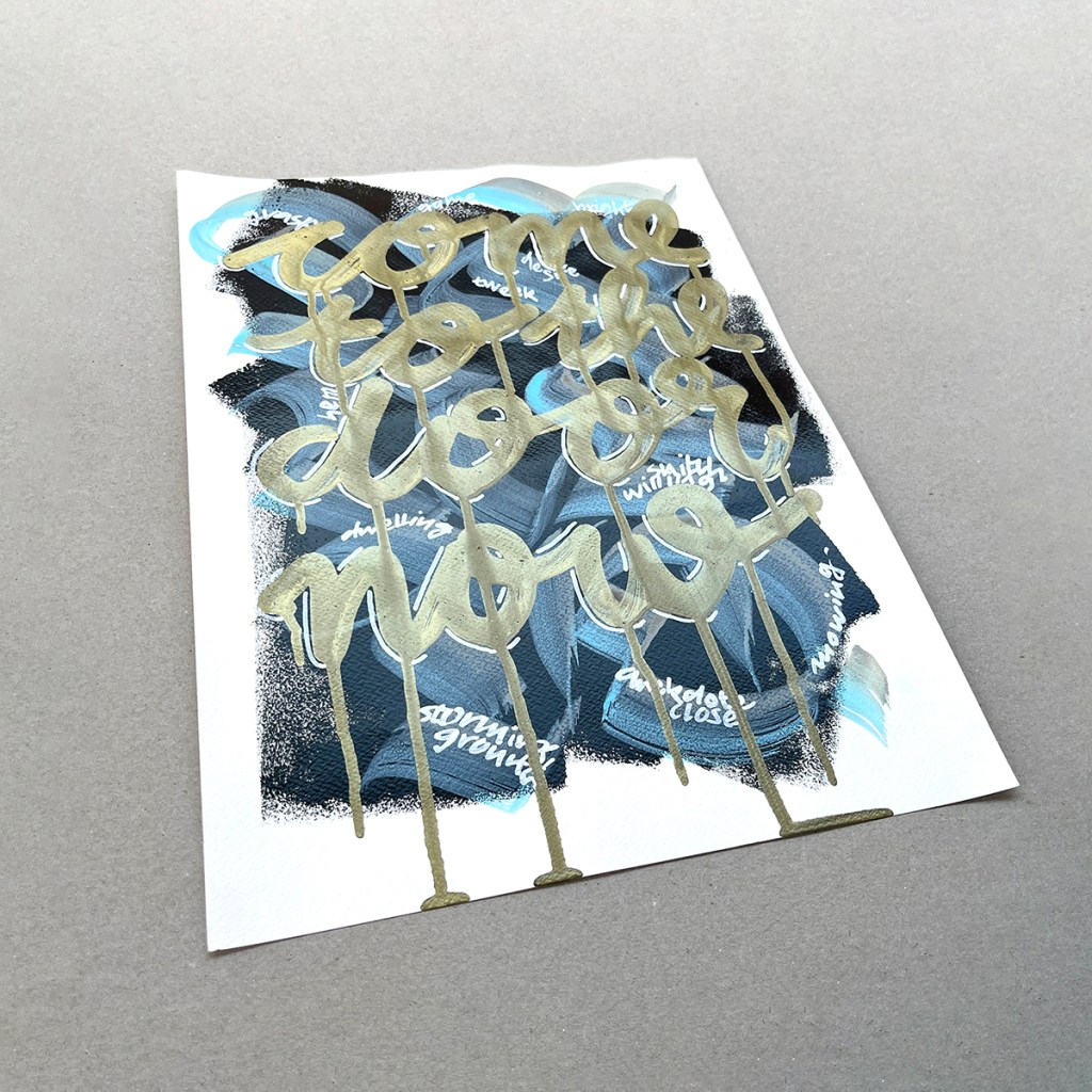 Pinsel, Bandzugfeder, Acryl, Tusche, Sprayfarbe auf Aquarellpapier, UV-protection-Spray Montana. Brush, ribbon pen, acrylic, ink, spray paint on watercolor paper, UV-protection spray Montana