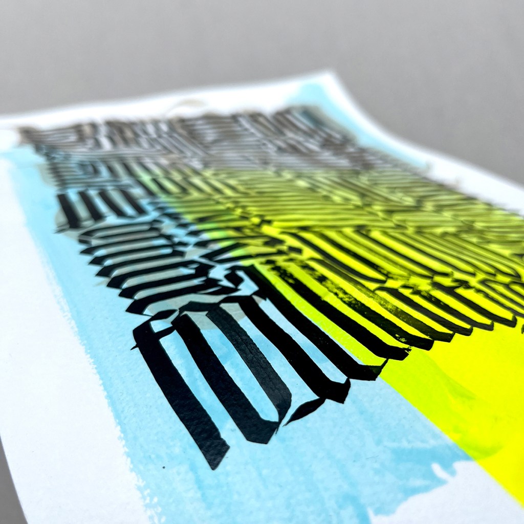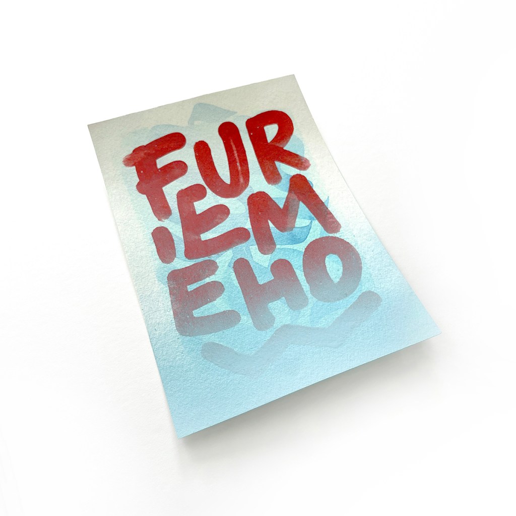 Rolle, Pinsel, Marker, Lack, Acryl auf Aquarellpapier, UV-protection-Spray Montana. Roller, brush, marker, varnish, acrylic on watercolor paper, UV-protection spray Montana
